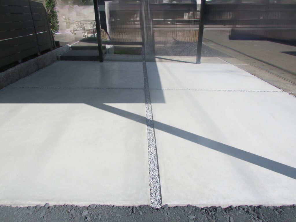 カーポートSC2台分の施工とコンクリート打設・砕石敷きを行いました。