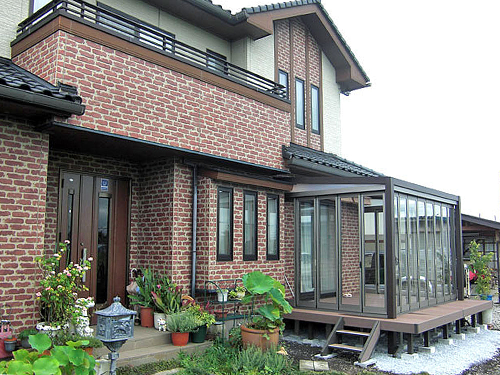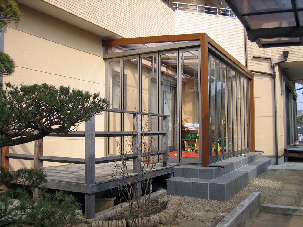 既存のテラスはこのまま処分をするのが持ったいえないので、他の掃出しサッシに移設しました。