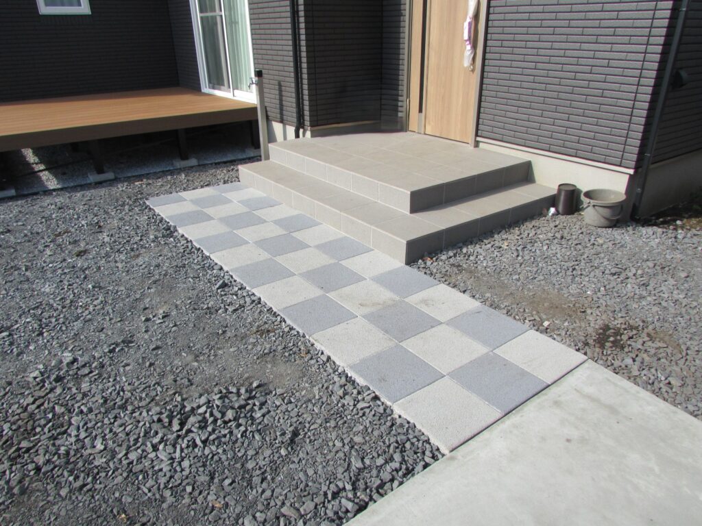 アプローチの舗装がアクセントになっています。