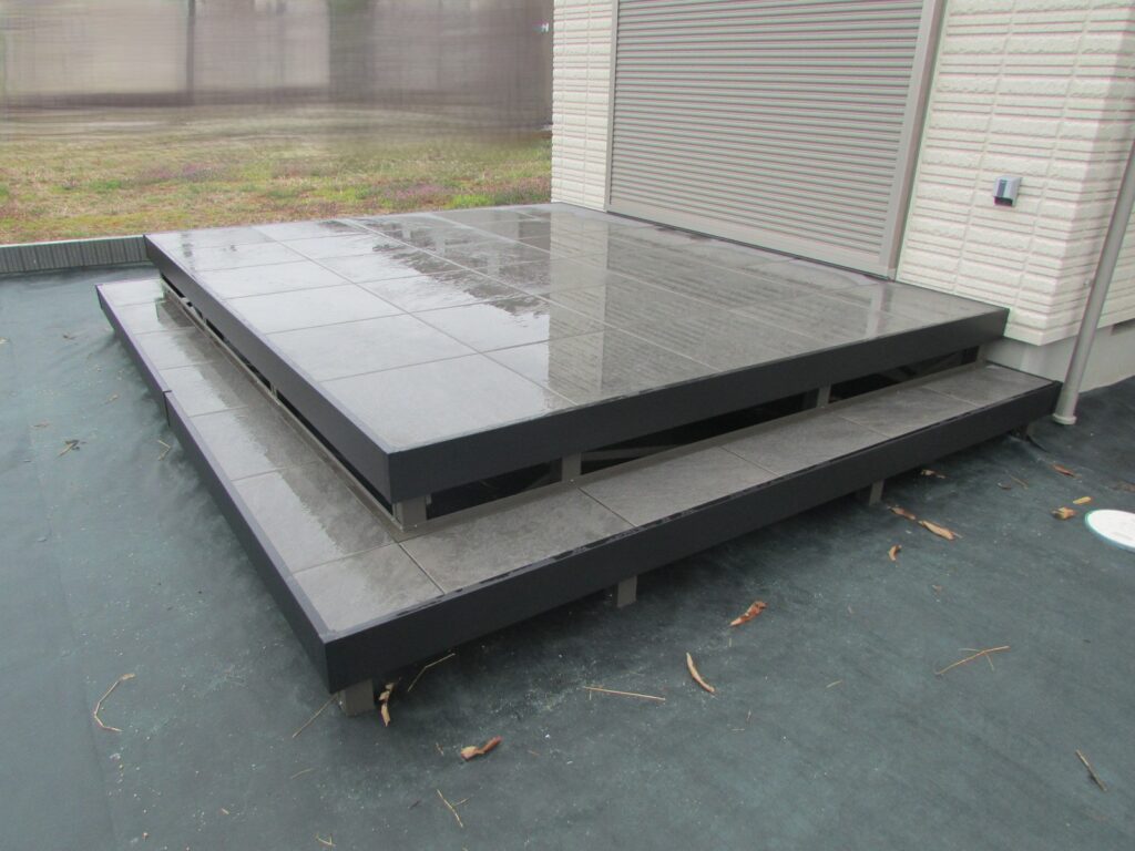 お庭にはLIXILのタイルデッキを施工しました。