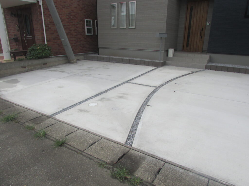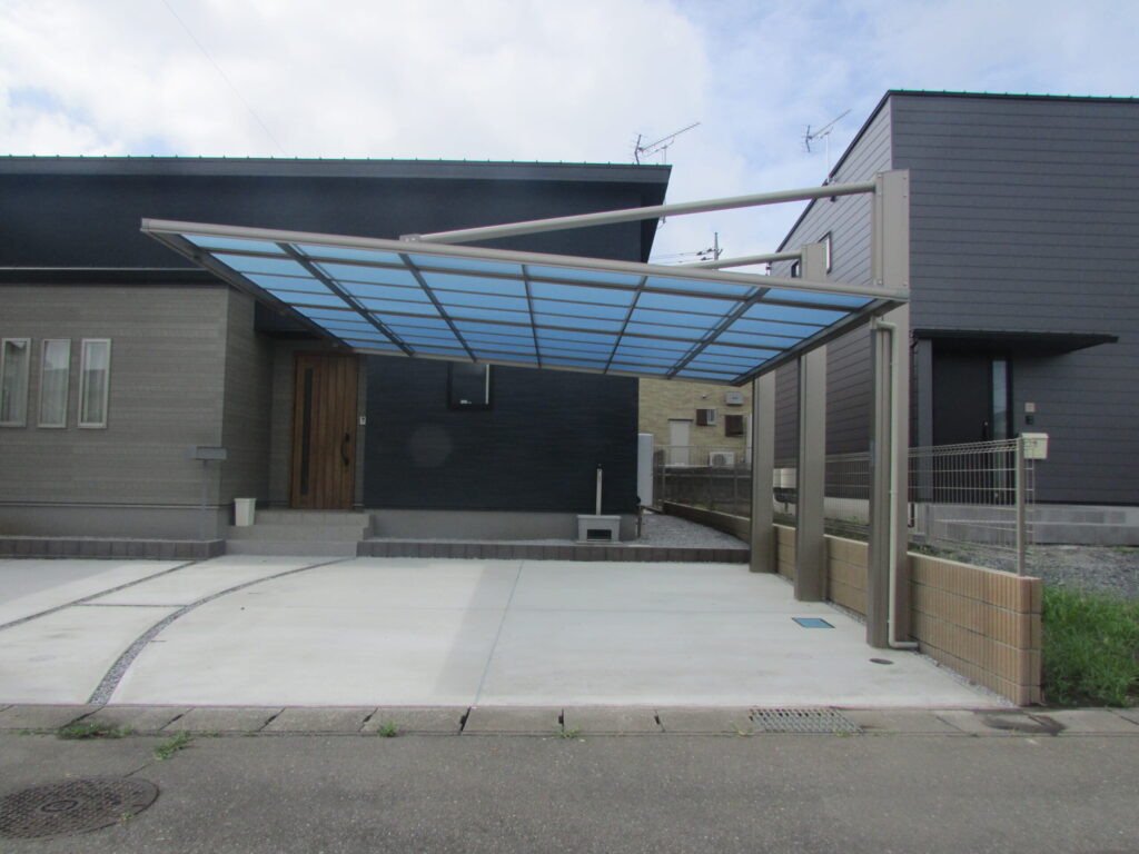 駐車場は車の出入りのしやすい片持ちのカーポートです。このおかげで4台車が駐車できます。