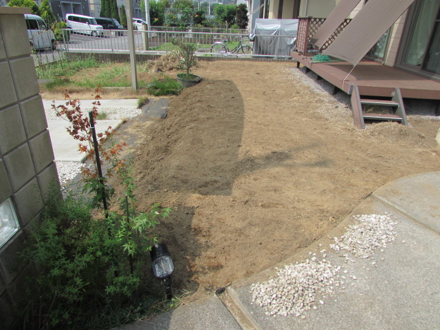 以前は天然芝や畑がありましたが、畑スペースを小さくし手入れの楽な外構になりました。