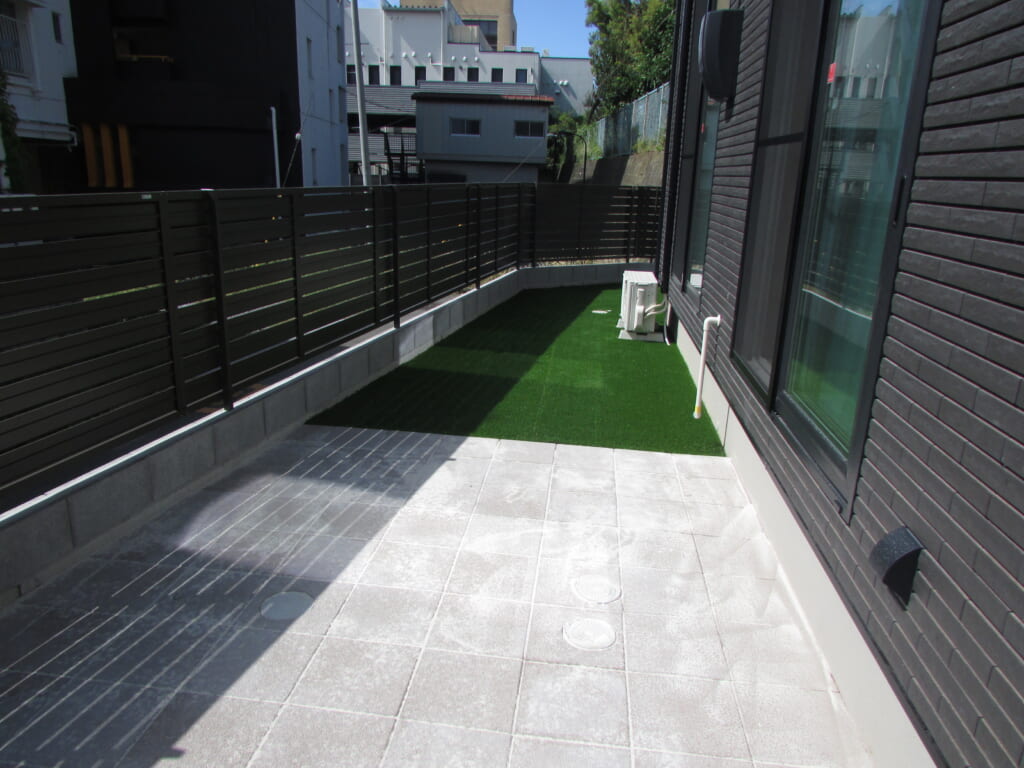 お庭はインターロッキングと人工芝でお手入れが楽なお庭にありました。