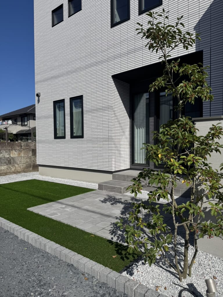 色合いも建物の雰囲気に合わせて統一感のある外構になりました。