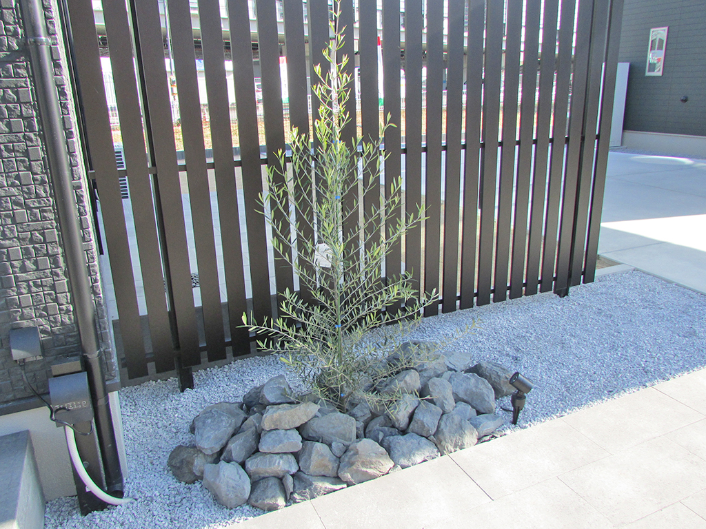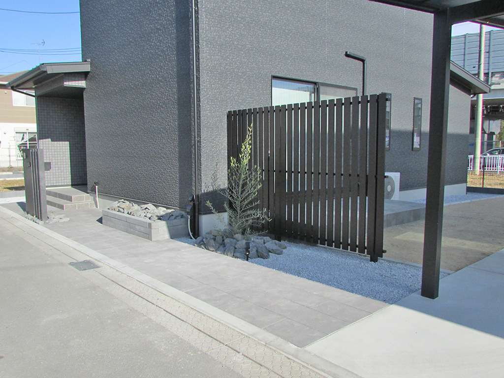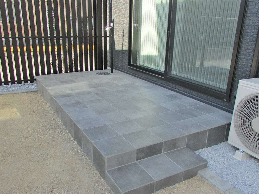 お庭は目隠しフェンスを設置したのでタイルデッキで視線を気にせず過ごせます。