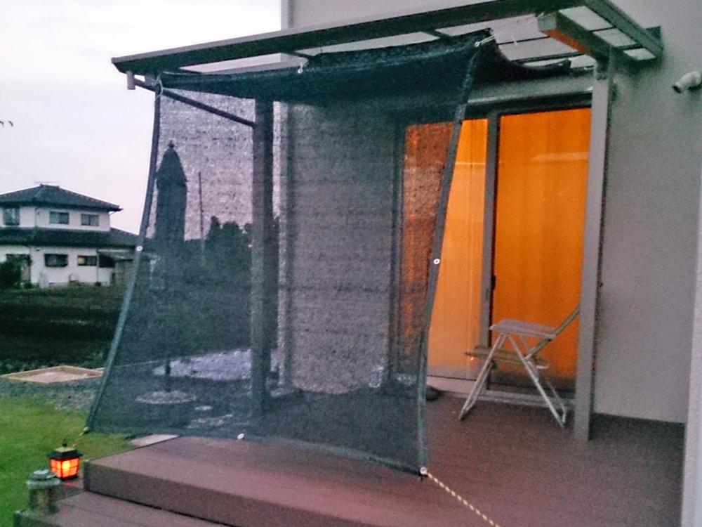 テラス屋根は建物にビスを打たずにつけてもらい、直接日差しが入らなくなって満足です。