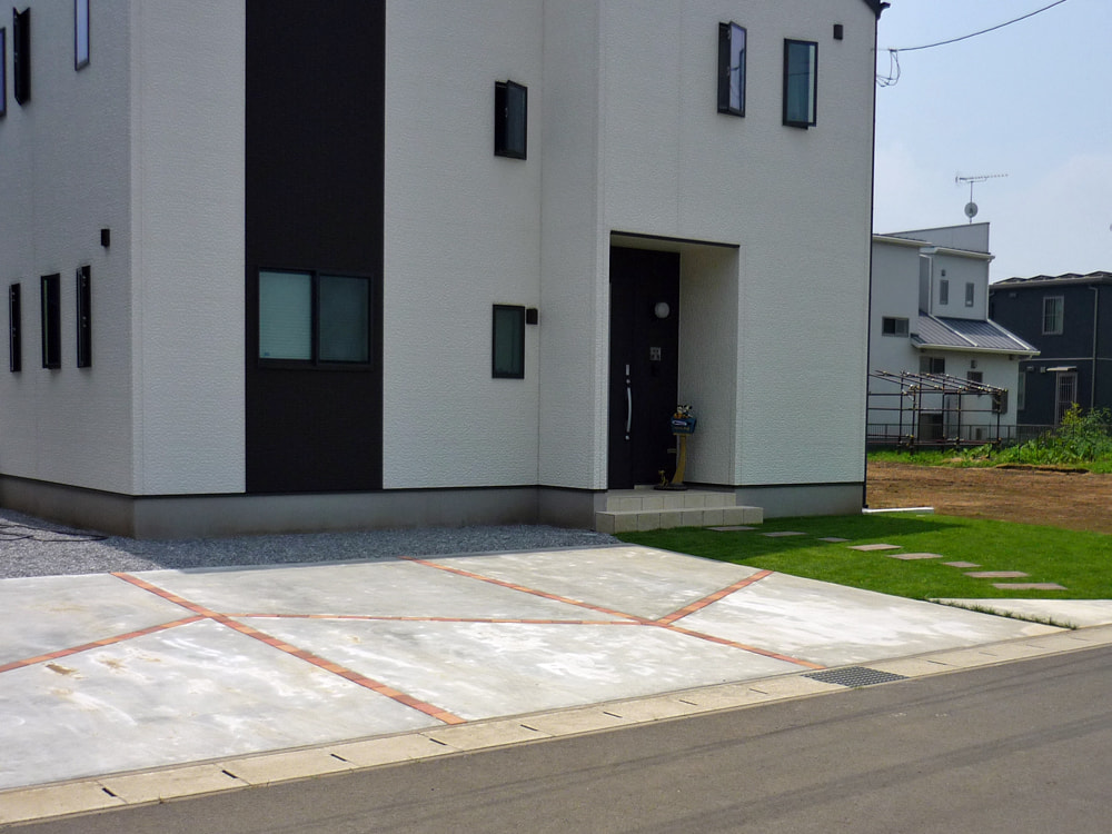 車が止められるスペースがほしいということ。途中で緑もいれたくなったので駐車場の外に芝もお願いしました。