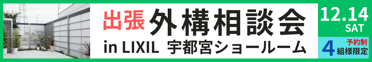 お待たせ致しました!毎回大好評の出張外構相談会を12月14日(土)に、LIXIL宇都宮ショールームにて開催致します。当日は、アサヤマの経験豊富なプランナーが、外構のお悩みに何でもお応え致します。「庭に目隠しがほしい」「家を建てたけど外構が手つかずで」など、どんなことでもOK。新築・リフォームを問わず、お気軽にご相談ください。お客様のご自宅の敷地図・配置図や現状のお写真などがあれば、より詳しくご相談いただけます。4組限定・予約制のため、すぐに埋まってしまう時間帯も。予約はお早めに!