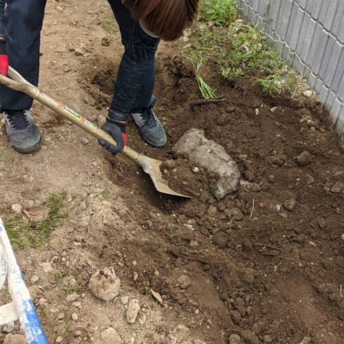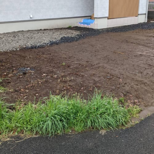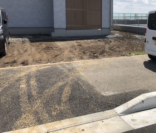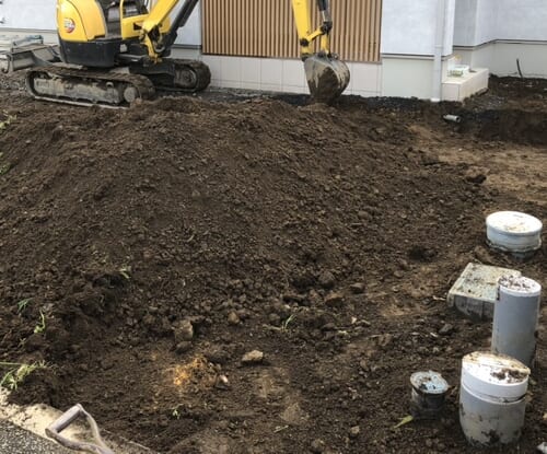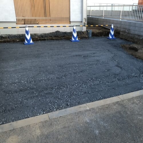 お庭部分のスキ取りと駐車場部分の掘削及び砕石入れ作業となります。お客様のお引越し前までに駐車場の砕石入れを完了させておきます。