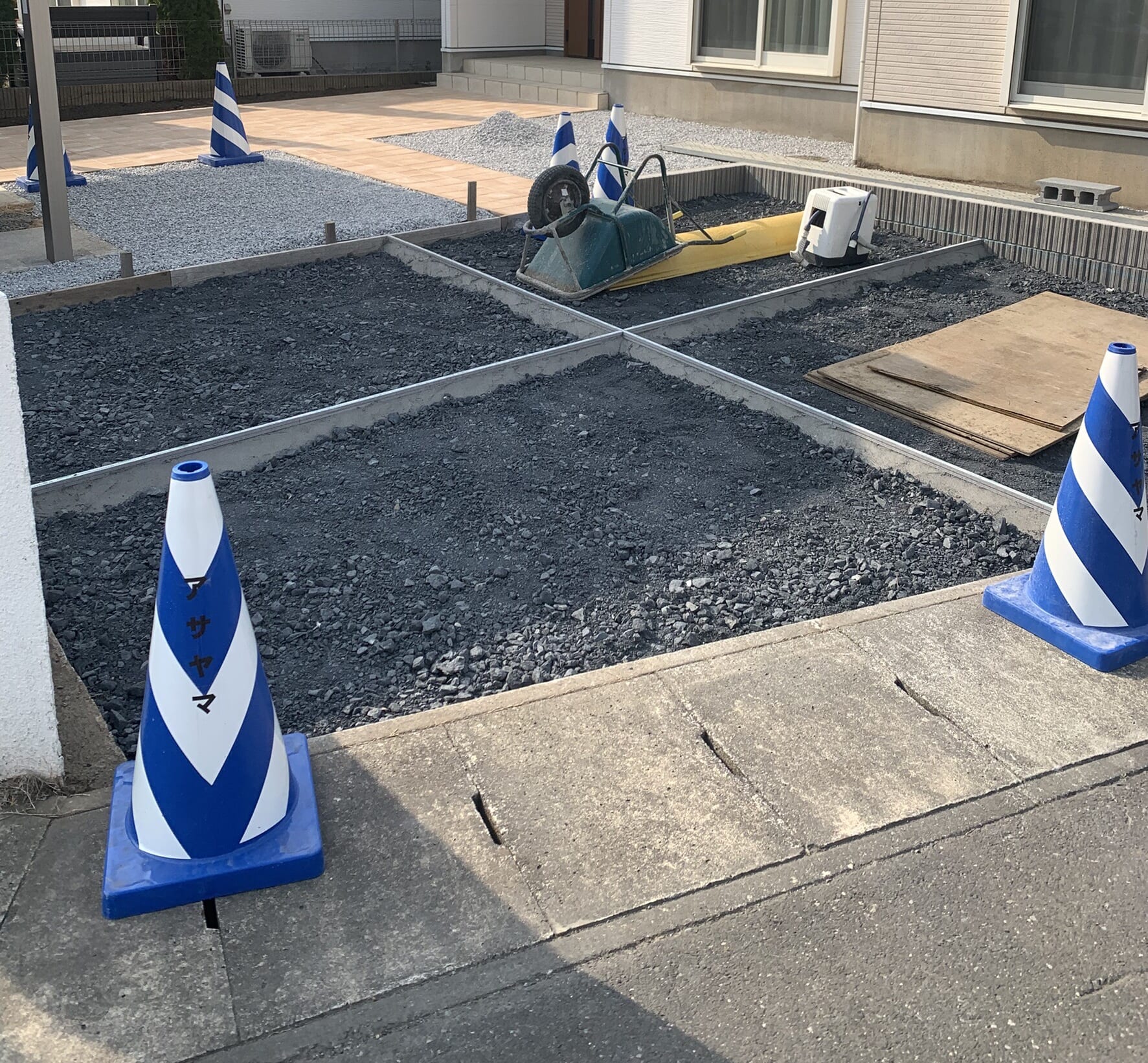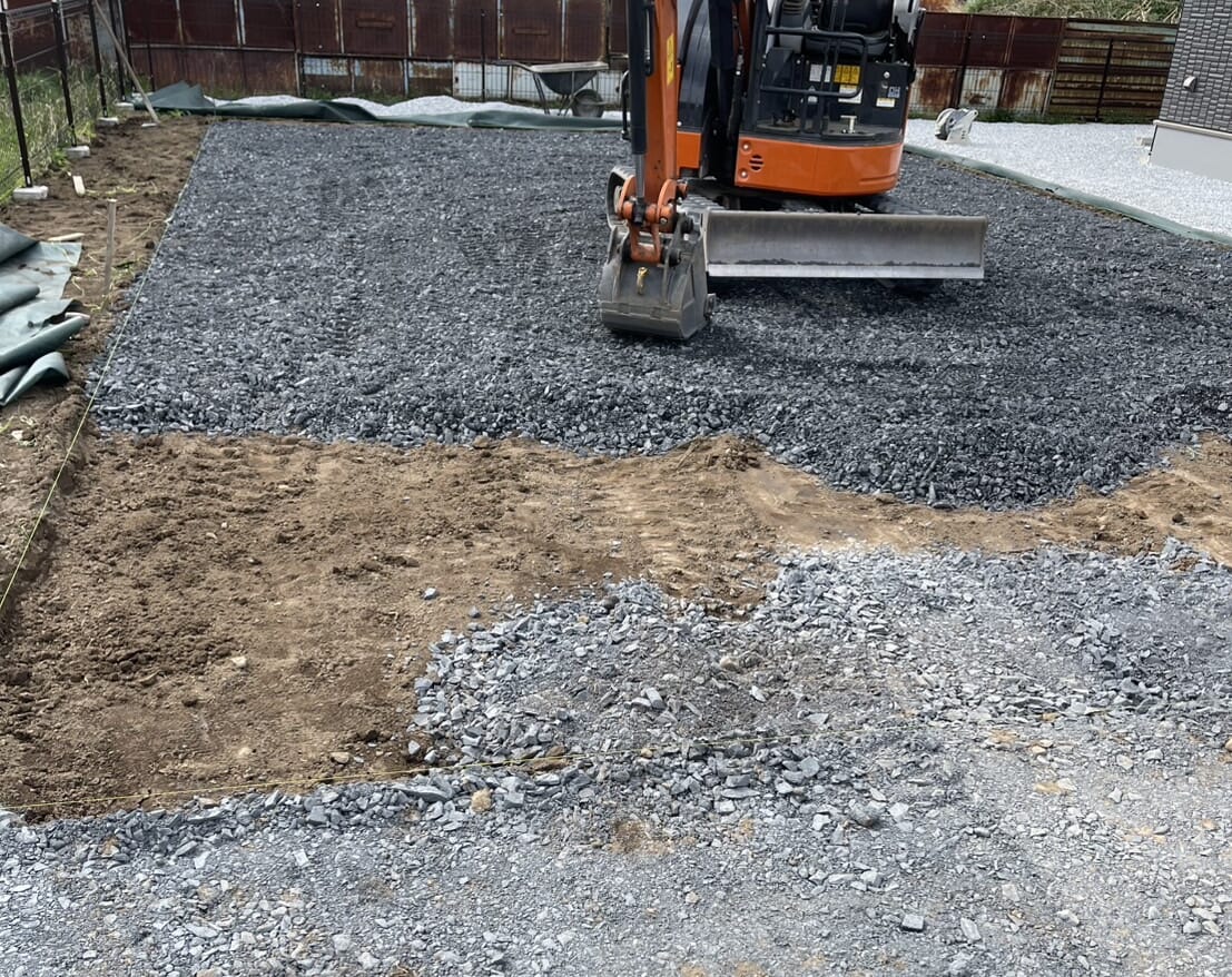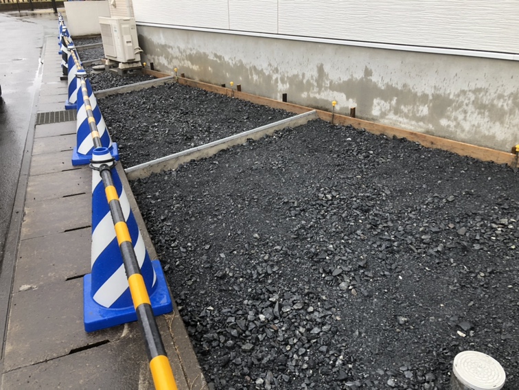 新築の外構工事になります。 カーポートはブラックマットのポリカ屋根なのでアルミ屋根のカーポートよりも安価に 屋根の汚れが目立つのを防ぐことができます。 工事着工です。よろしくお願いいたします。