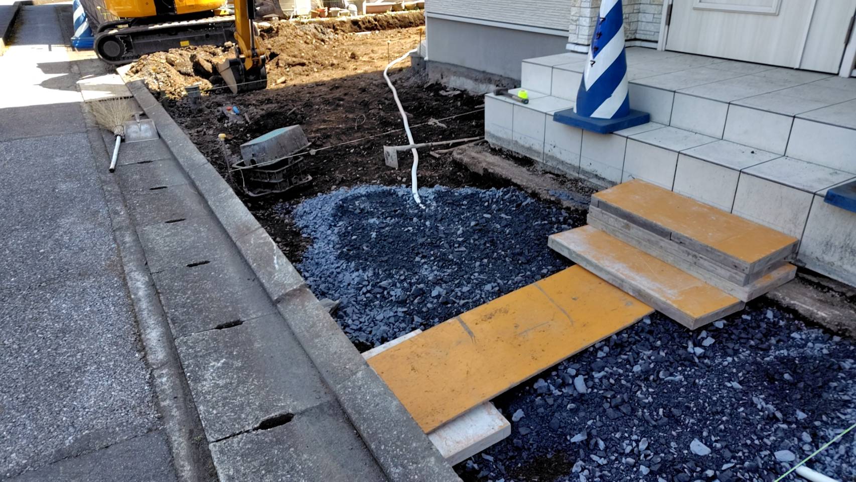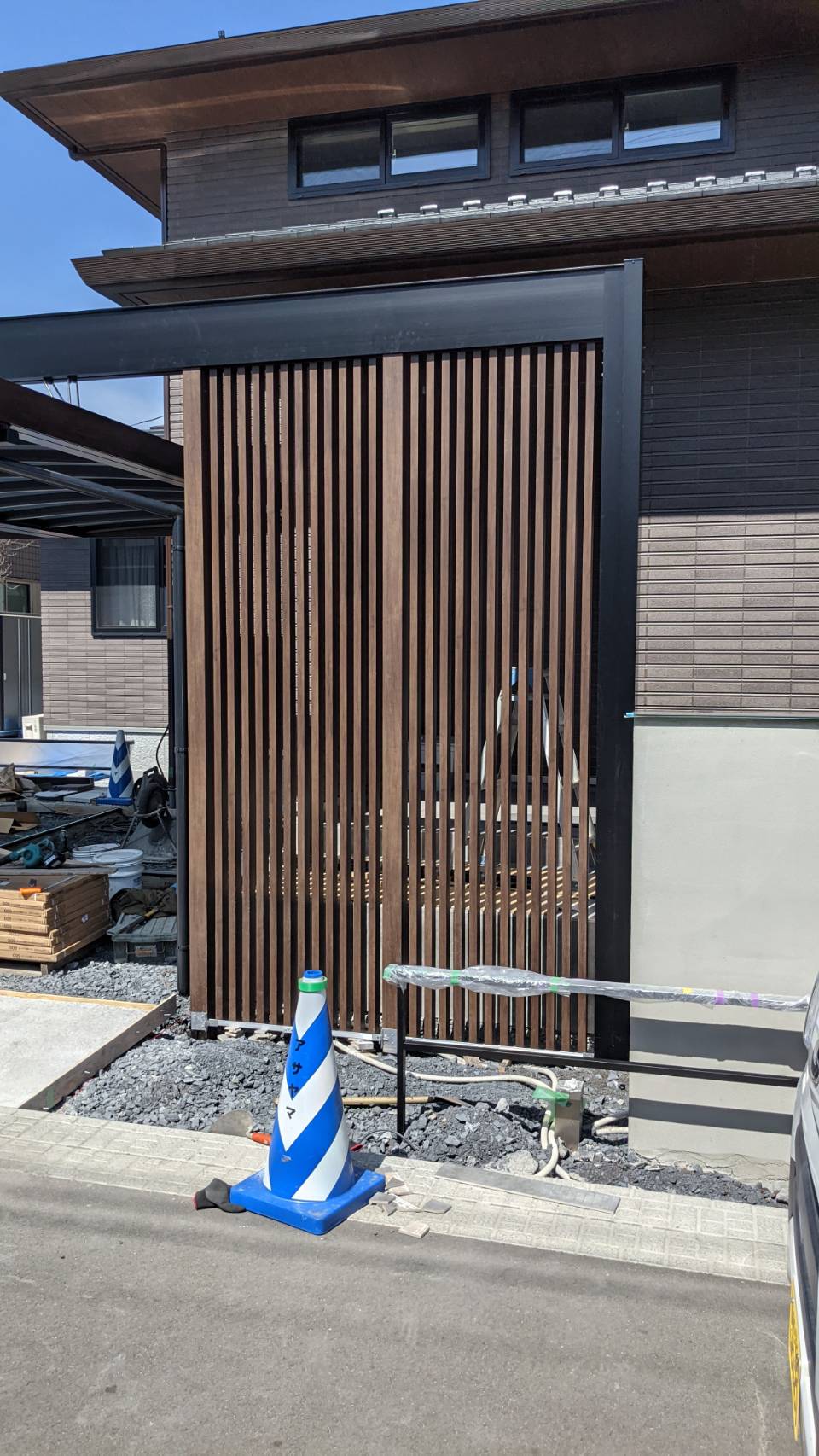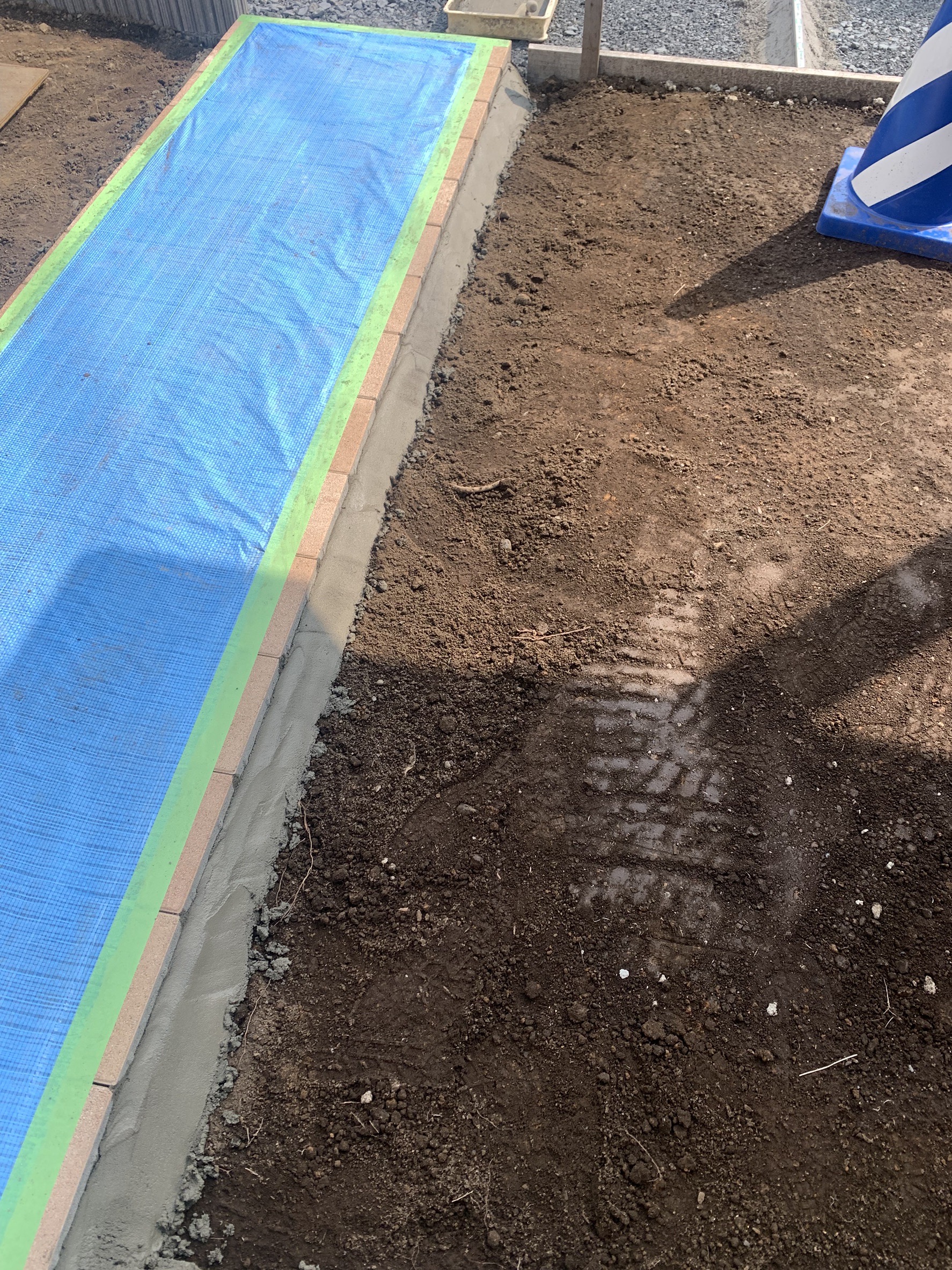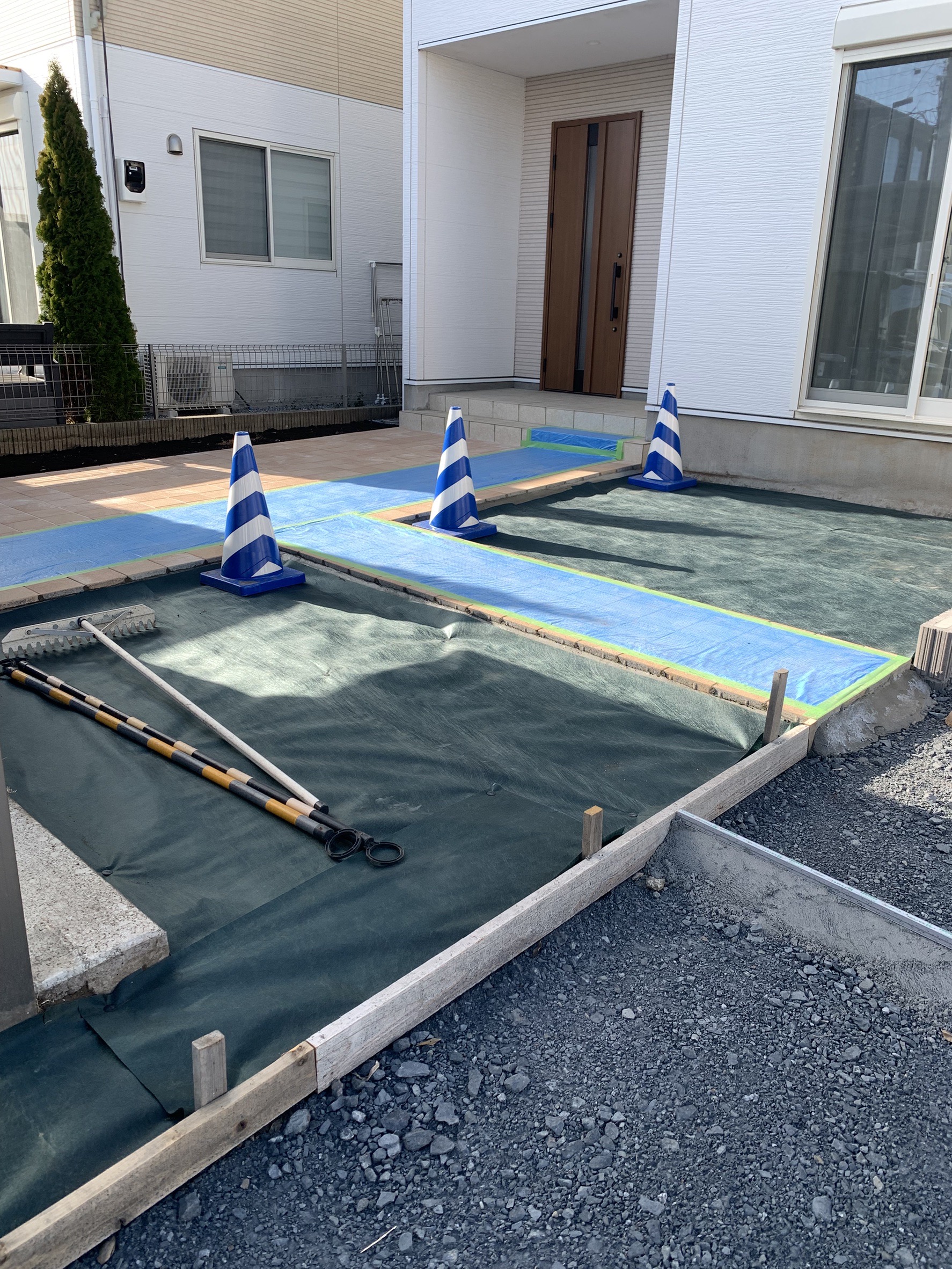 新築の外構工事になります。 お庭と駐車場の間もフェンスで囲っているため安心してお庭で遊ぶことができます。 色合いは建物に合わせて選択しました。 工事着工です。よろしくお願いいたします。