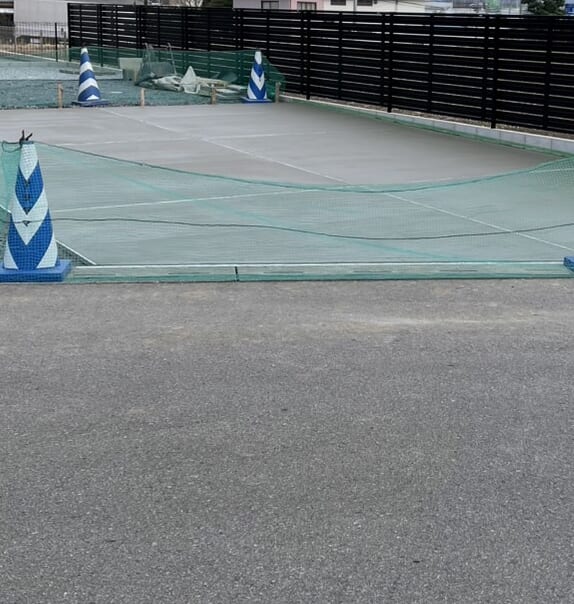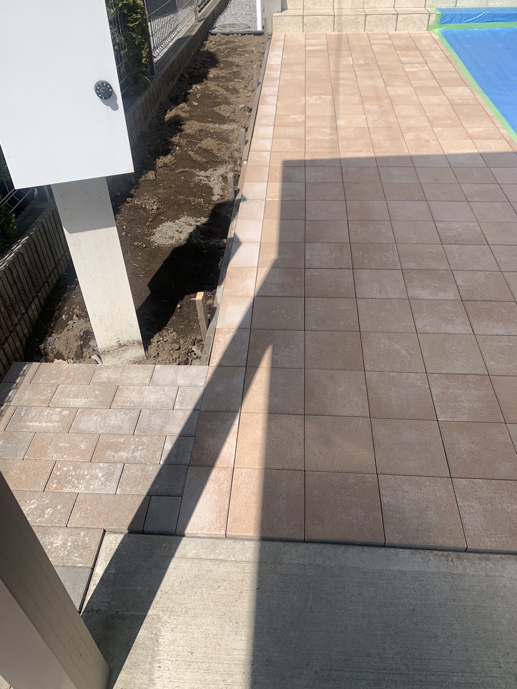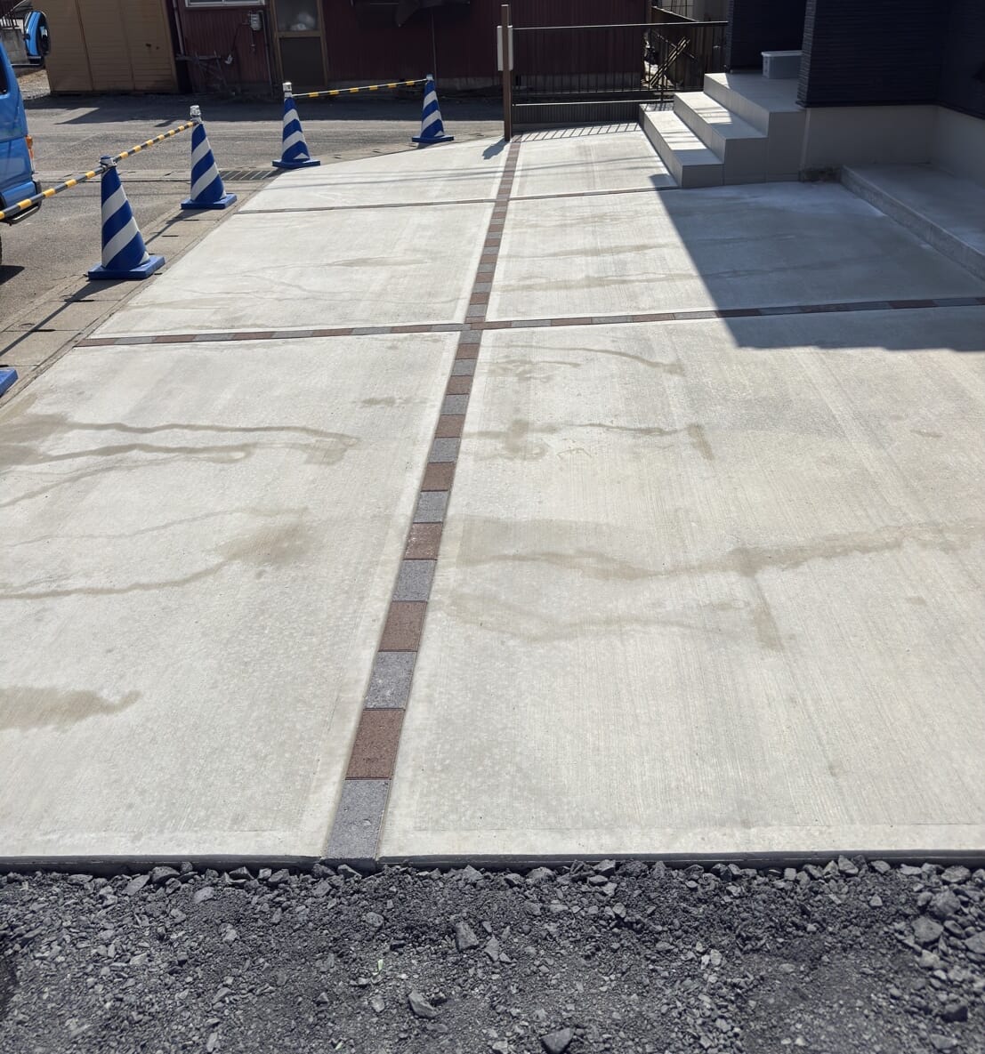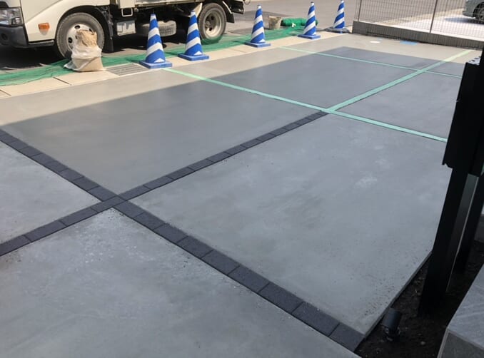 駐車場周りの外構工事となります。 建物の雰囲気に合わせて商品を決めました。 照明も施工しますので夜間も使い勝手の良い外構になります。