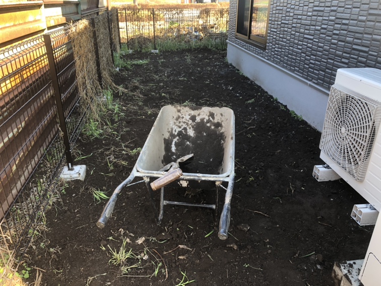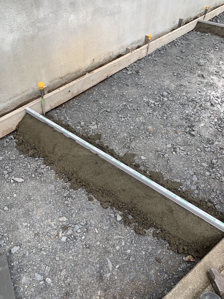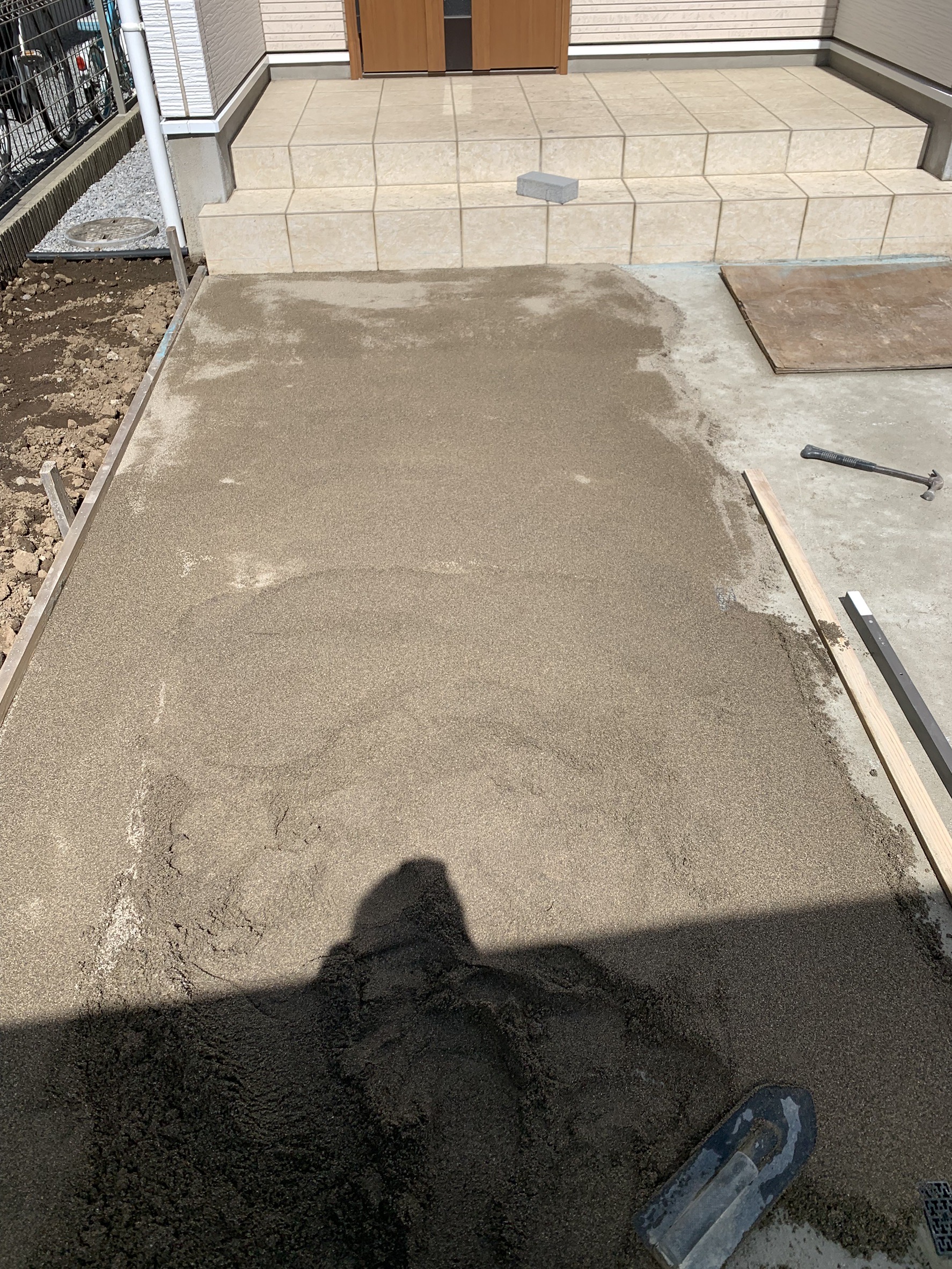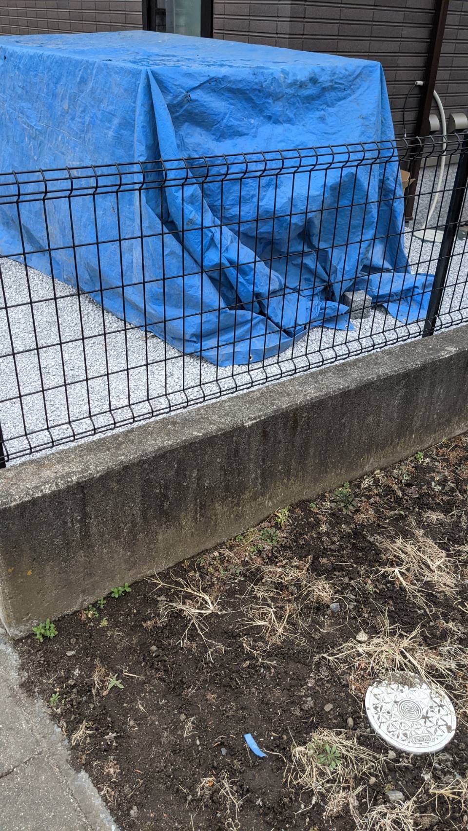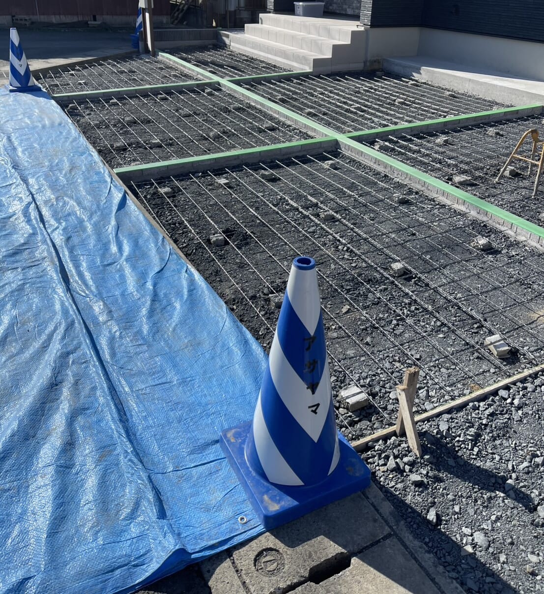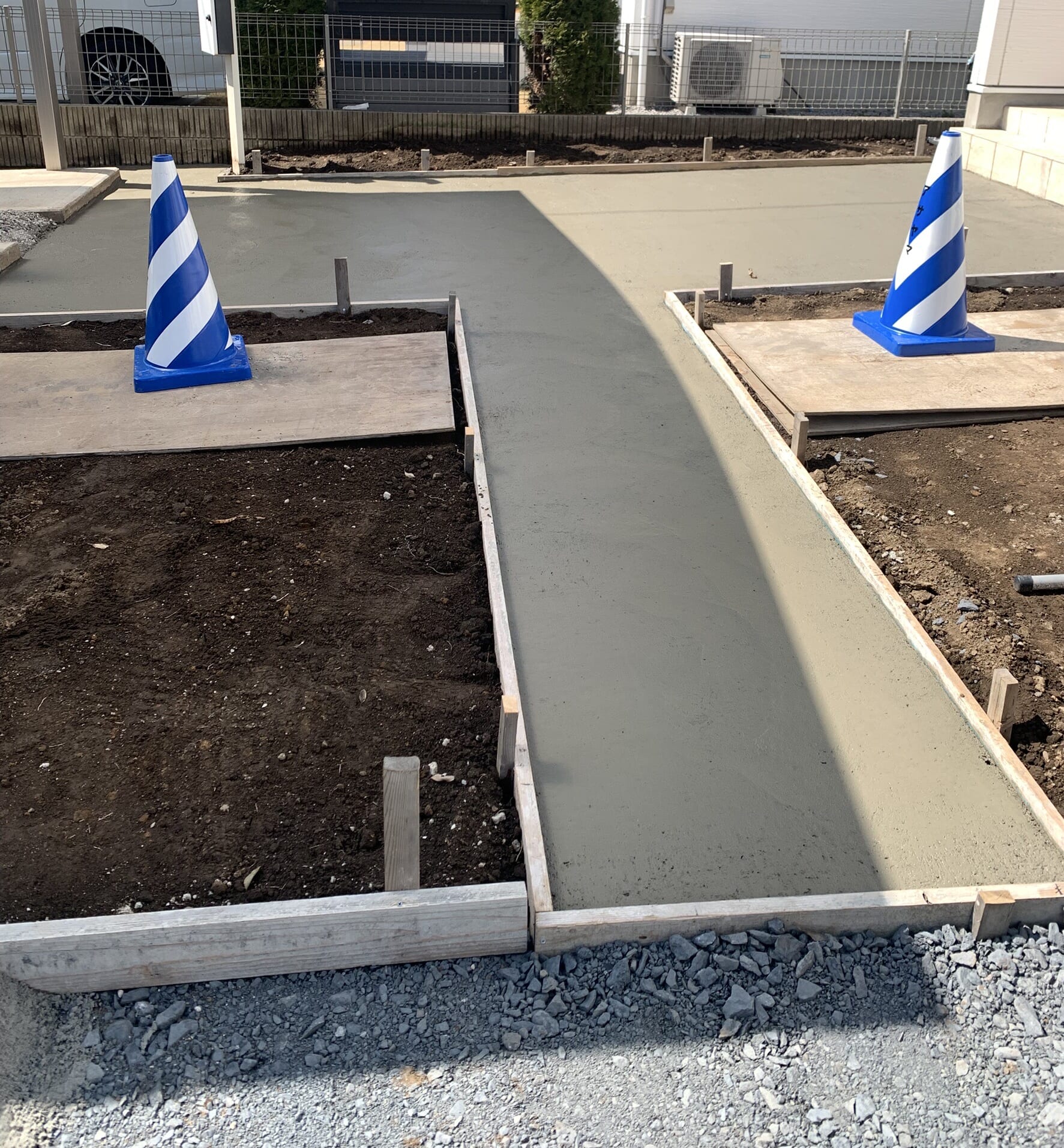 新築の外構工事です。ガレージ・カーポートを施工します。駐車場もお車の出入りを考え舗装範囲や位置を決めました。 工事着工です。よろしくお願いいたします。