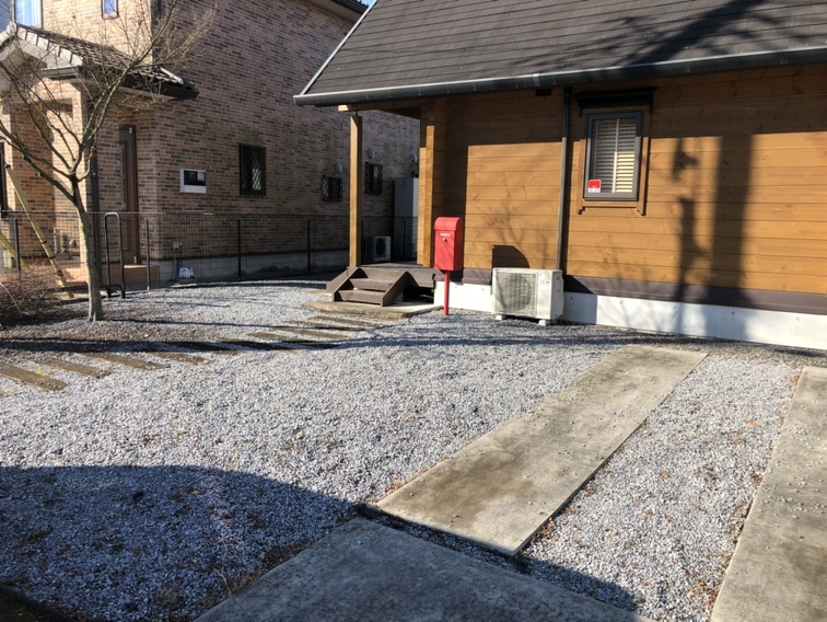 新築の外構工事のご依頼をいただきました。 高低差があるため土留めを施工し、玄関タイルも追加します。 お庭は人工芝敷きを施工するのでお手入れの心配も無く、 目隠しフェンスで目線を遮り安心して過ごせます。 工事着工となります。よろしくお願いいたします。