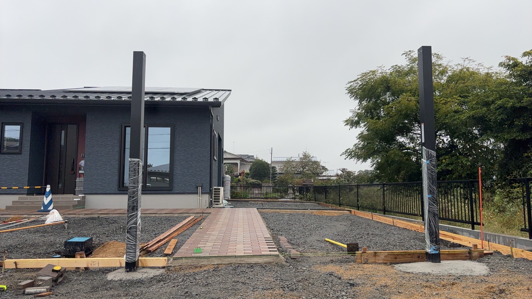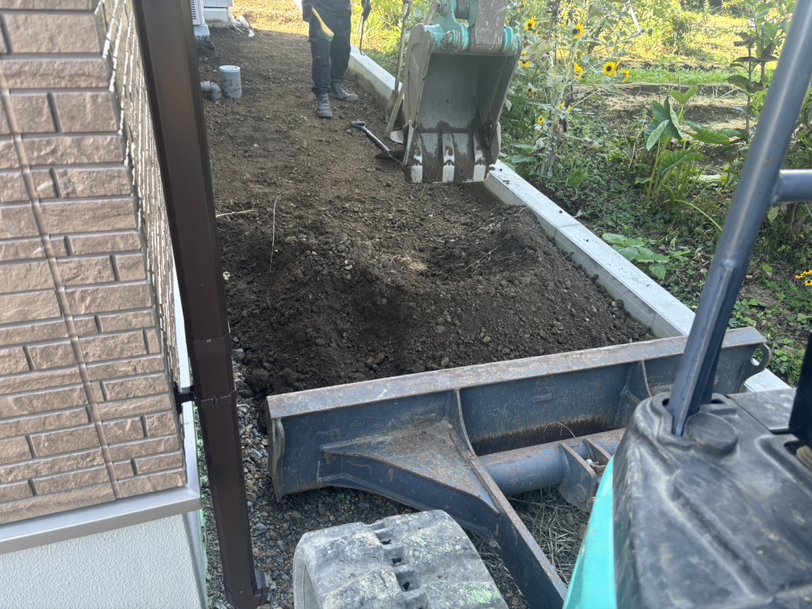 新築の外構工事になります。 使い勝手や今後の外構計画を見越したプランになっています。 工事着工です。よろしくお願いいたします。