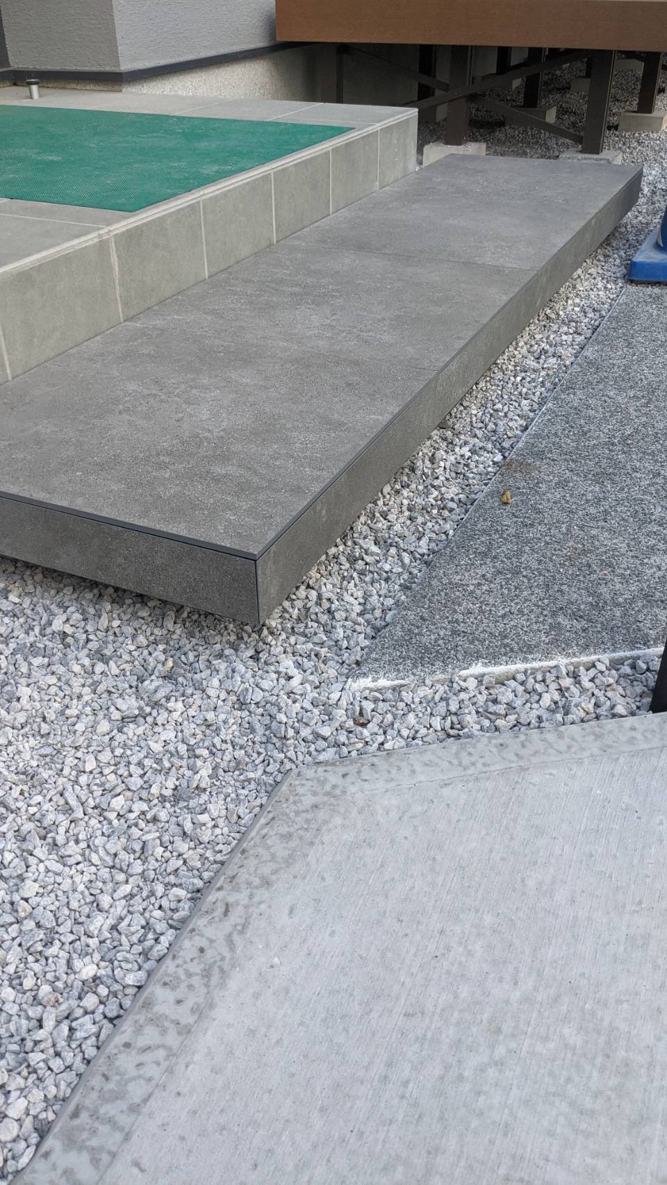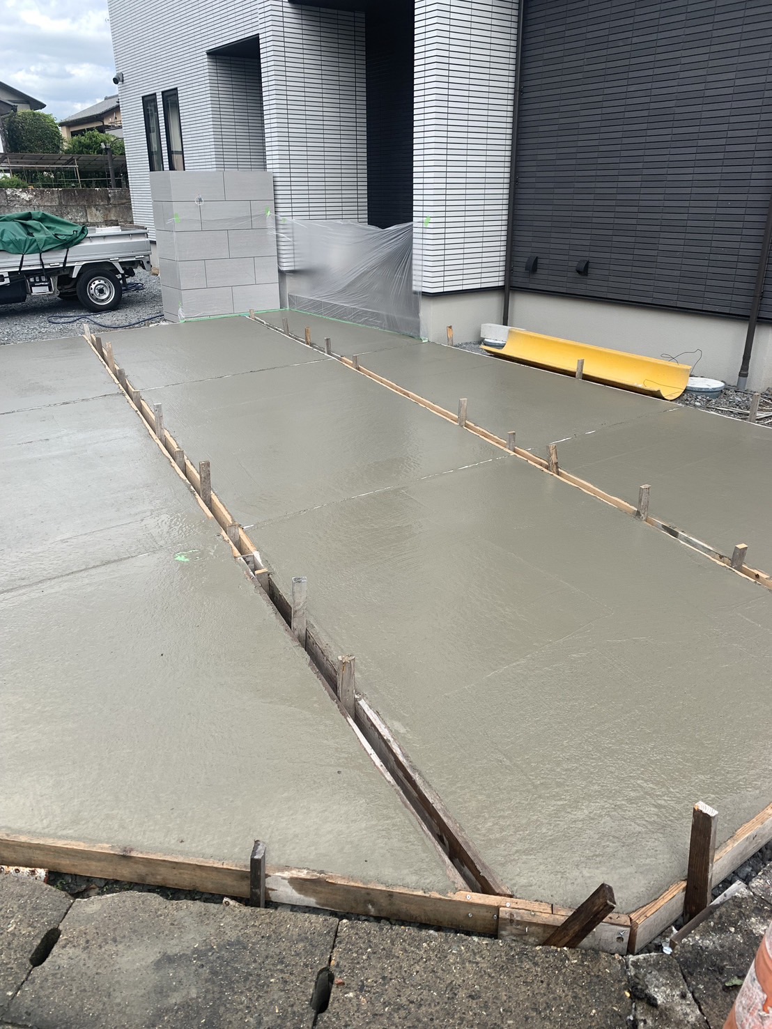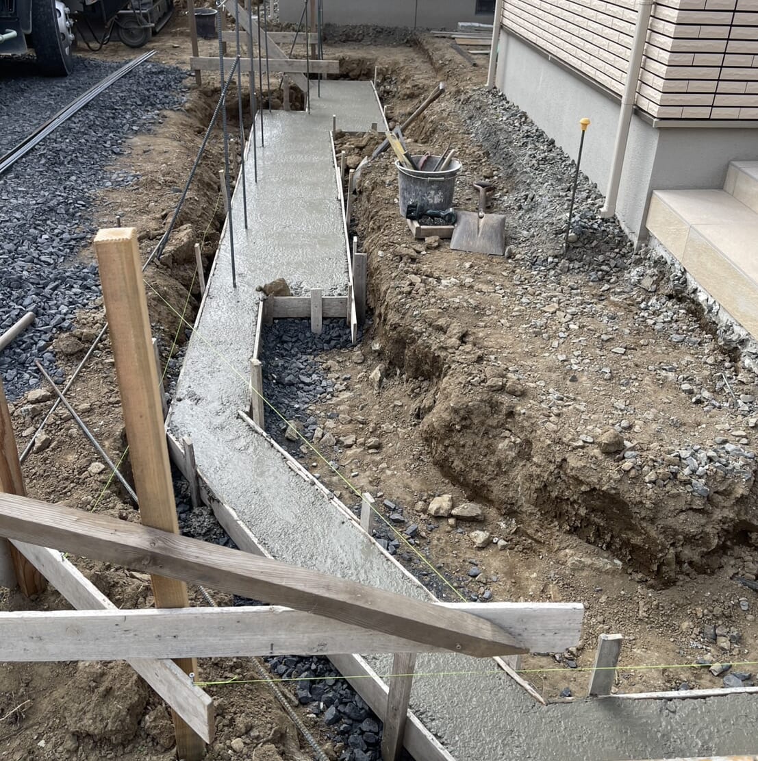 新築の外構工事になります。 一部コンクリート打設とお庭を全体的に防草対策として防草シートと砂利敷きを施工しました。 道路側は十分な高さでメッシュフェンスを設置しました。