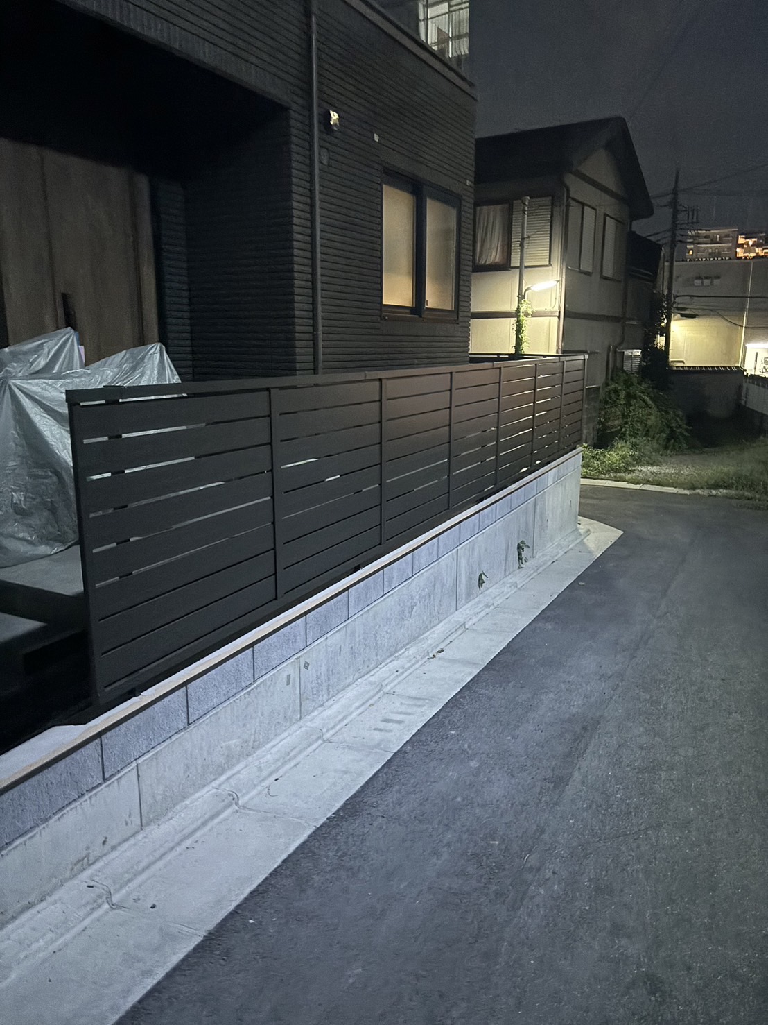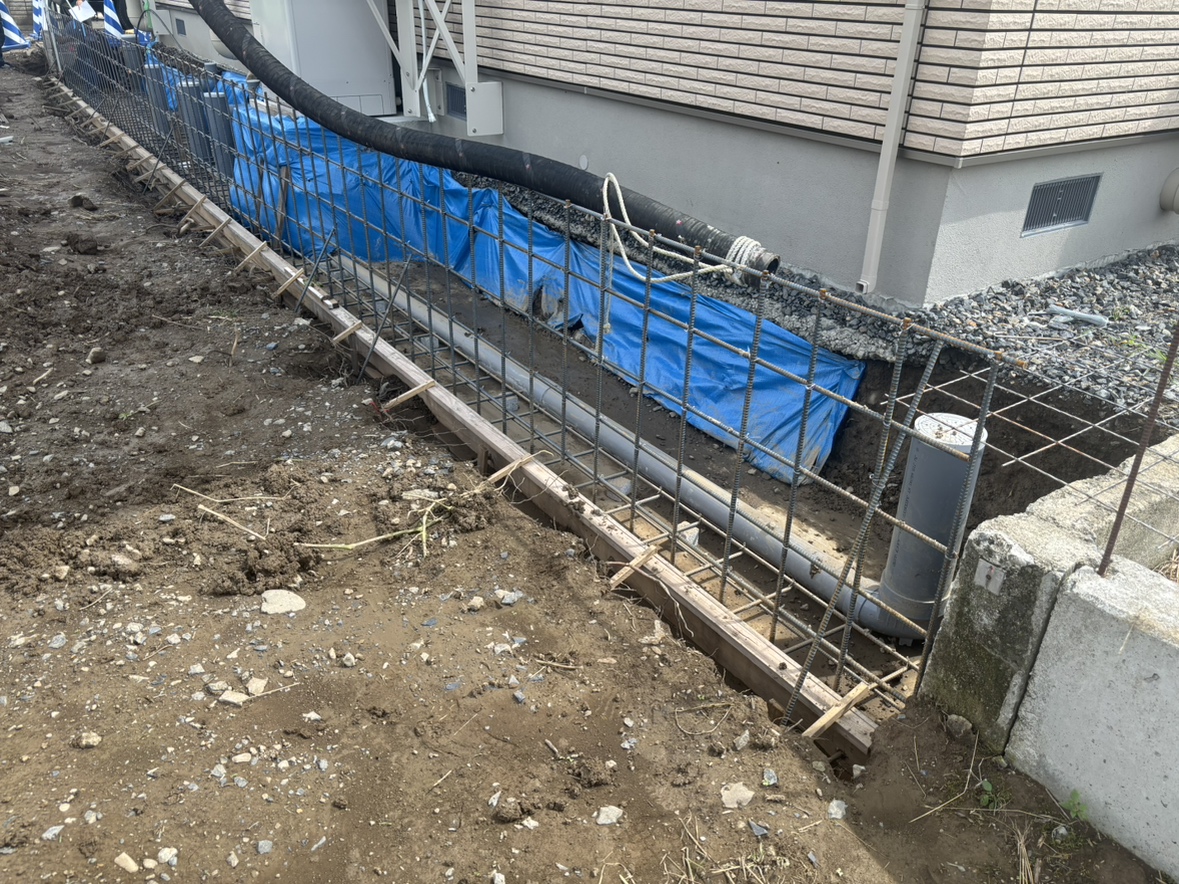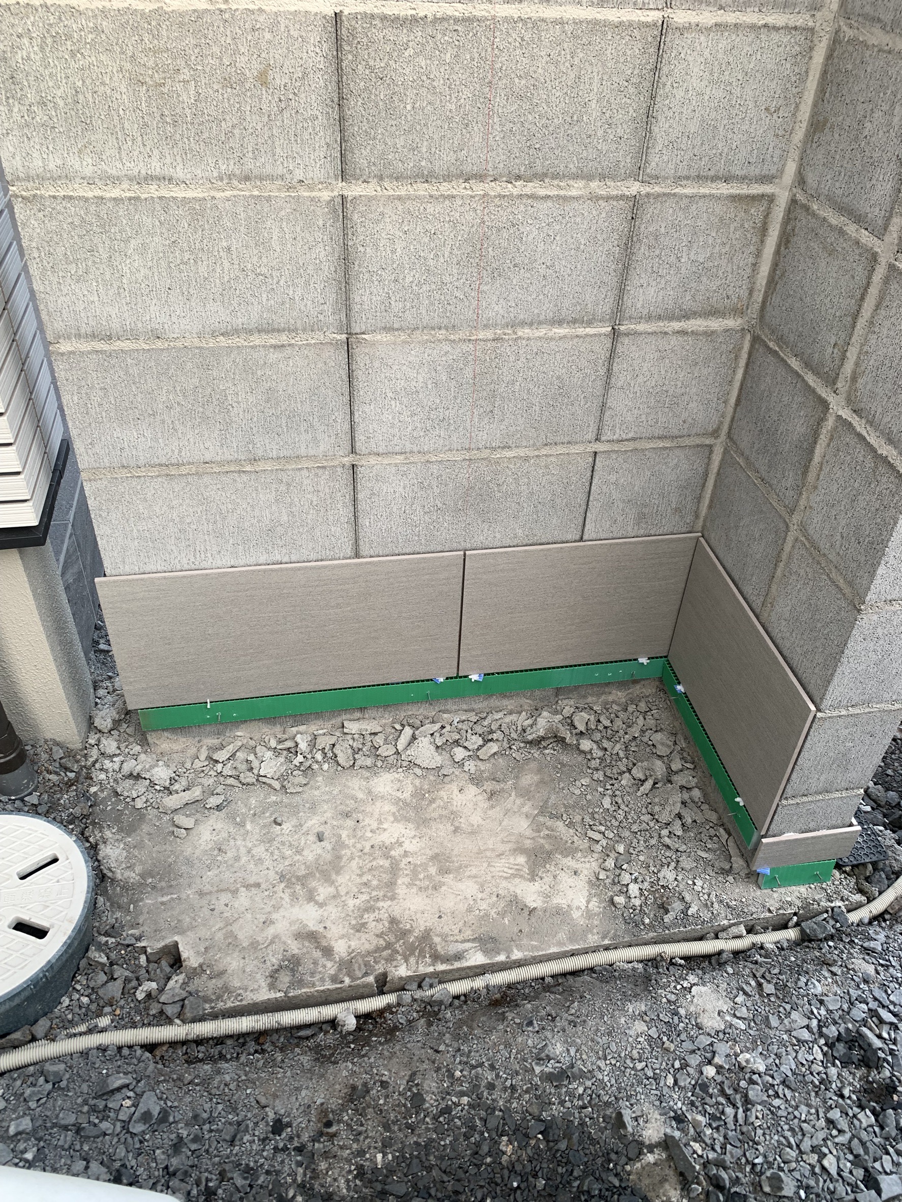 お庭を全体的にコンクリートに仕上げました。 サイクルポートはサイドパネルも設置したので雨風を遮ることができます。