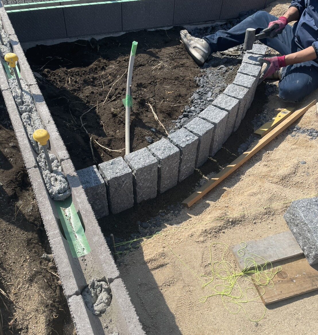 アプローチまわりの外構工事を行いました。 門柱と植栽の配置は、お客様のご希望をお伺いしながら細かく調整。建物とのバランスや動線も考慮し、自然にまとまるレイアウトをご提案しました。 植栽スペースの手前には、アクセントとしてインターロッキングを敷設。足元に変化をつけることで、アプローチ全体にさりげない表情をプラスしています。デザイン性だけでなく、歩きやすさにも配慮した仕上がりです。 また、将来的に植栽…