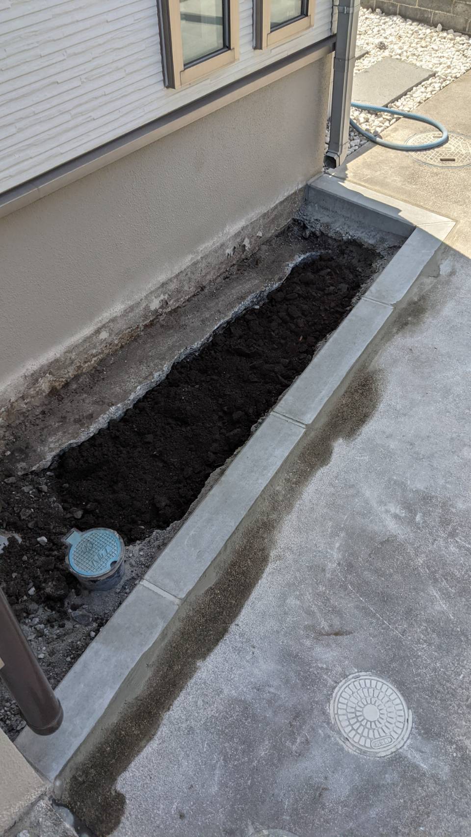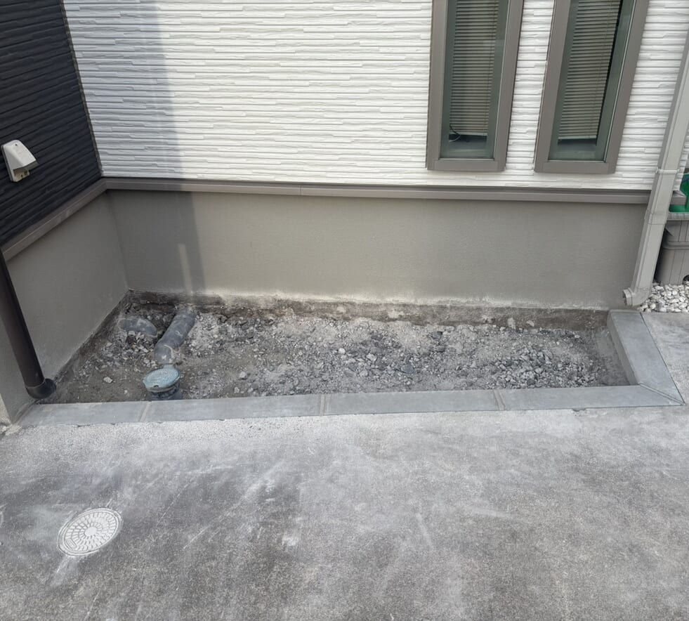 今回は手作業の場面をご紹介いたします。 外構工事では、広い場所や重機が入れる場所ばかりではありません。狭い通路やお隣との境界ギリギリの部分、庭石が多く転がる箇所など、機械が使えない場所も多くあります。そんな時は手作業でスコップや一輪車を使って土を運び出し、地面を整えていく作業は体力も時間もかかりますが、「お客様の大切な敷地を傷つけないように、そして完成後に美しい仕上がりになるように」と、一つ一つの…