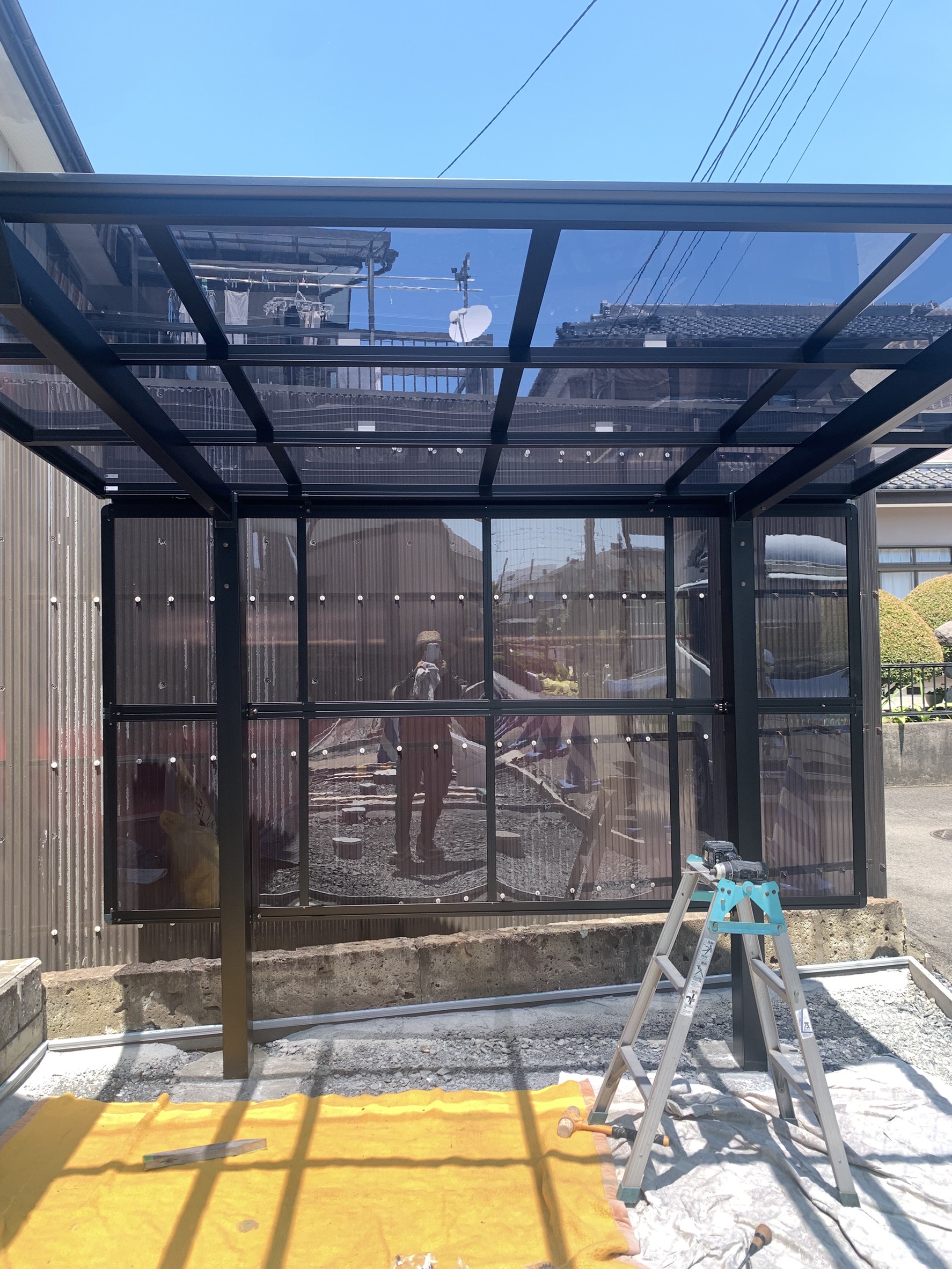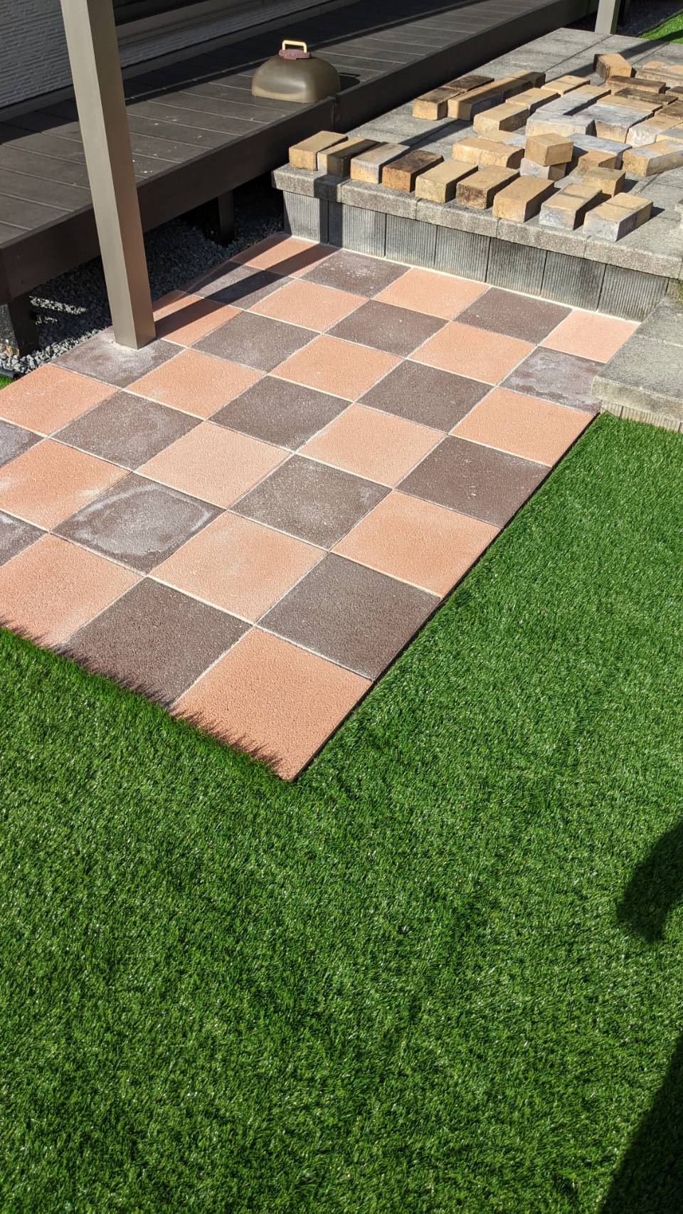 新築の外構工事です。 カーポートは柱が駐車場から玄関への動線に被らないよう梁延長にしています。 アプローチは6角形の平板敷きを施工します。 工事着工です。よろしくお願いいたします。