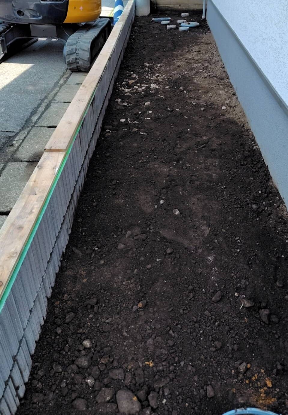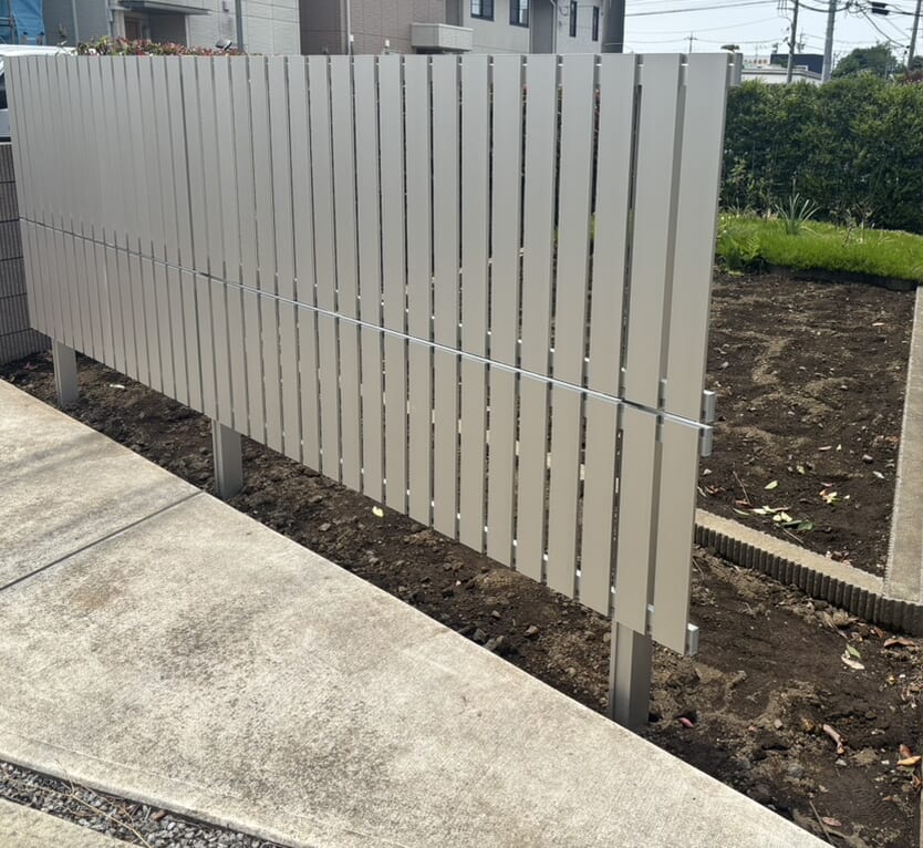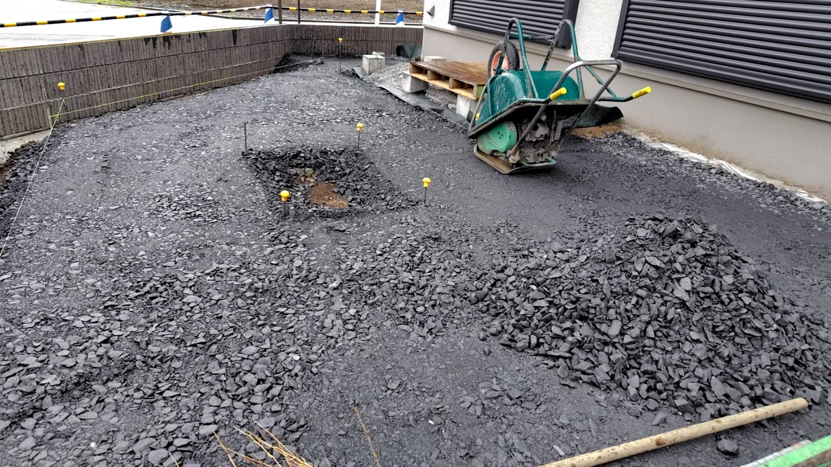 新築の外構工事になります。 カーポートSCの施工事例です。シームレスライトがアプローチの上になり夜間のライトアップも綺麗に演出します。
