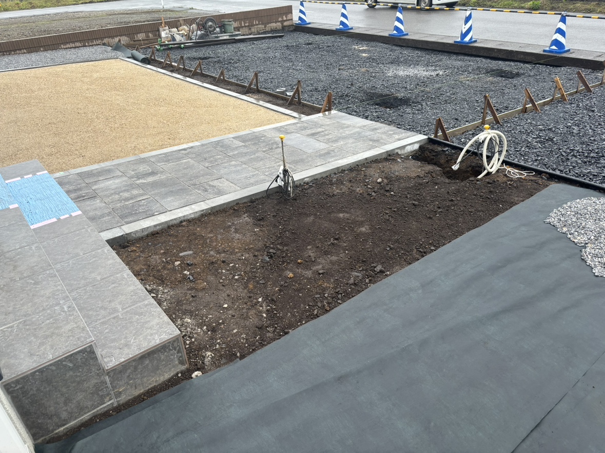 新築の外構工事になります。 デザインを重視しつつ過ごしやすい動線を考慮しました。 室内から見える坪庭も素敵な空間に仕上がりました。