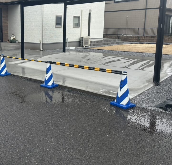 新築の外構工事になります。 カーポートSCの施工事例です。シームレスライトがアプローチの上になり夜間のライトアップも綺麗に演出します。