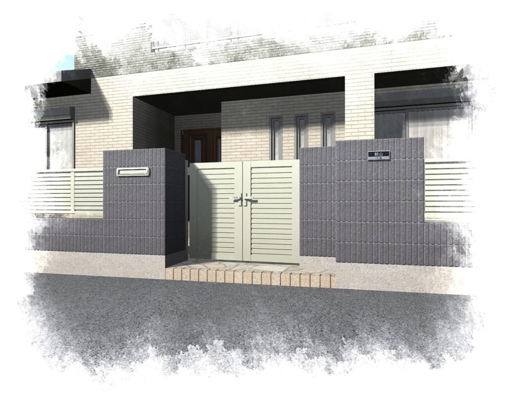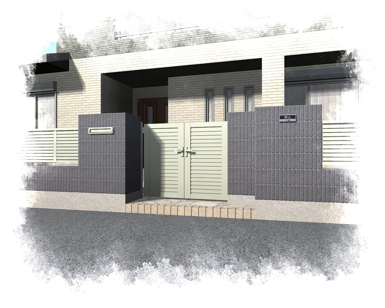 門扉・門袖 化粧ブロック+笠木 エスビック:リブロックF