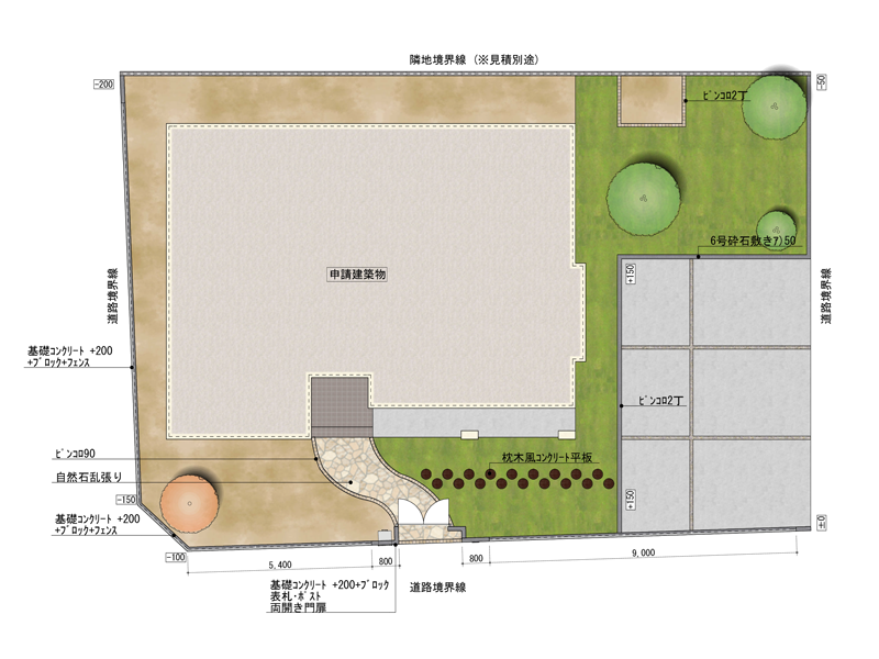 参考プラン紹介  金額別のプラン  100万円〜200万円  100万円~200万円10 南面道路 オープン外構
