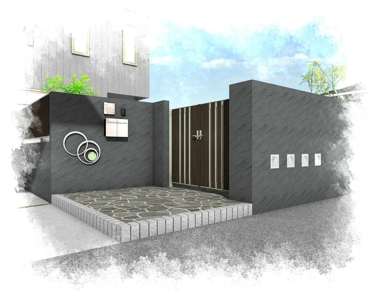 | 門袖・門柱 | 下地ブロック+塗壁 | 美ブロシルキーHG(四国化成) |