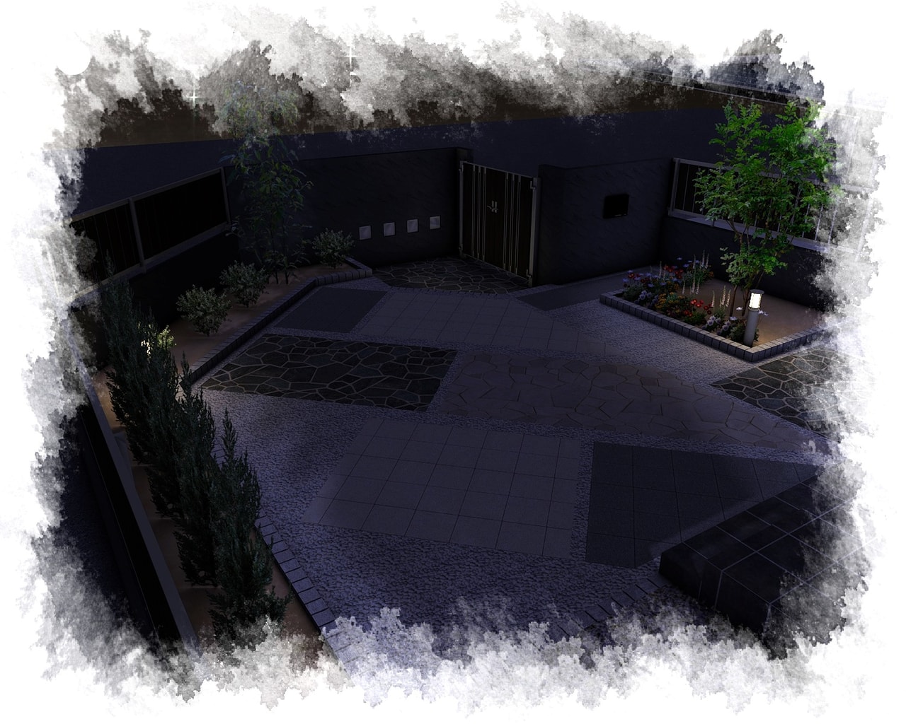 | 土留め・境界 | 化粧ブロック+塗壁 | 美ブロシルキーHG(四国化成) |
