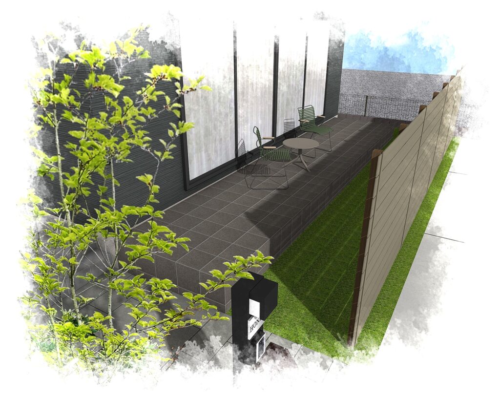 植栽の伐採・伐根後の施工プランです。芝刈りや植栽のお手入れが難しくなってきた際にご参考にしていただければと思います。