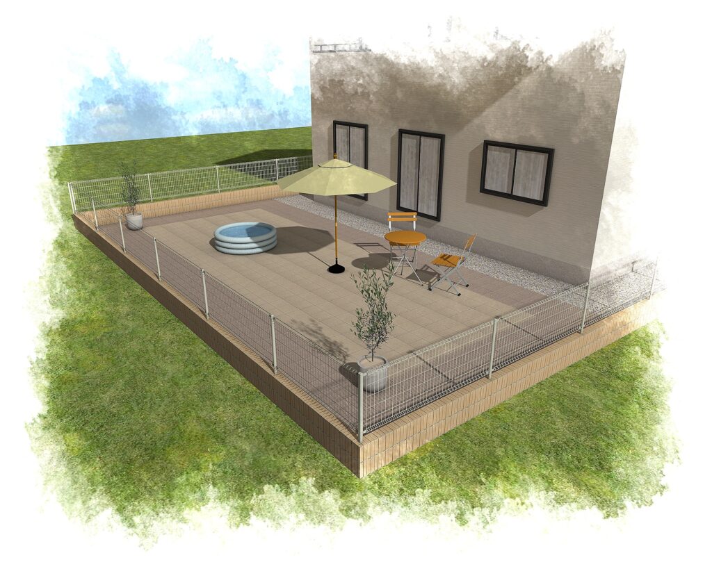 インターロッキングで舗装したり、緑が欲しい場合には人工芝や植木鉢で植栽を育てることもおすすめです。