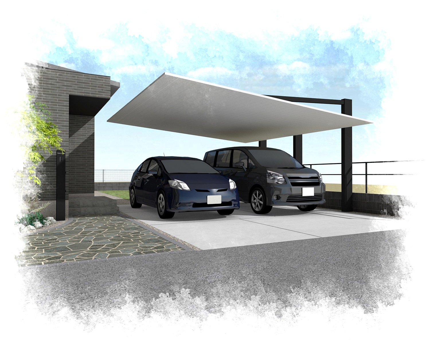 カーポート 後方支持90度回転納まり LIXIL:カーポートSC