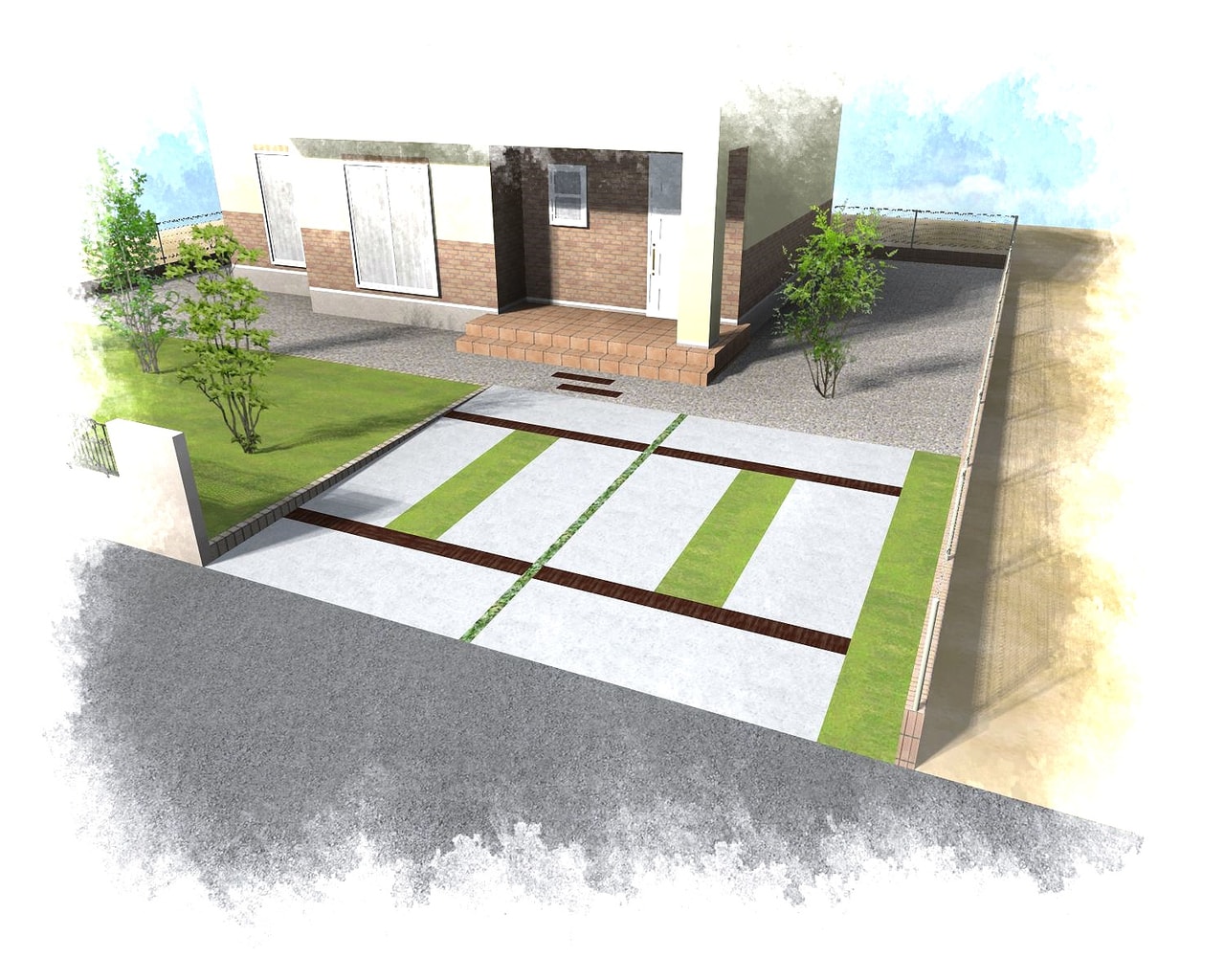 100万円~200万円5 南面道路 オープン外構 | ホームエクステリア『アサヤマ』